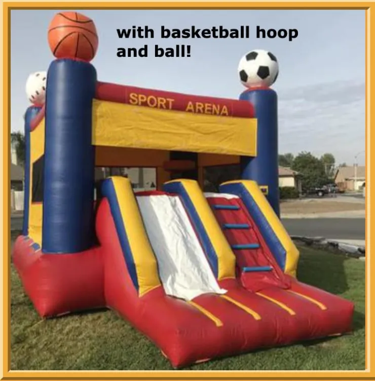 Get ready to elevate your outdoor event with our action-packed Red/Blue Front Slide Sports Arena. Perfect for sports enthusiasts of all ages this versatile inflatable brings a new level of excitement and fun to your backyard party or community gathering. Whether you're a fan of basketball soccer or baseball this sports arena offers endless hours of energetic play and friendly competition.