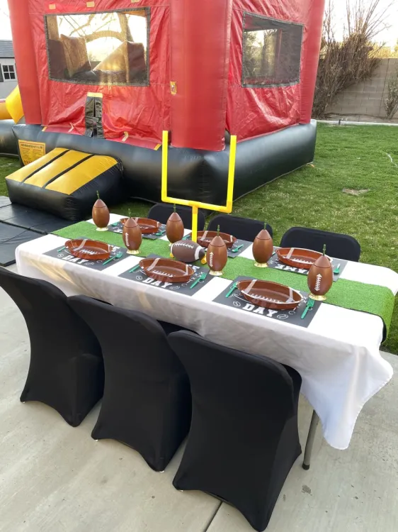 This table setting is not just about aesthetics; it's about creating a cohesive and immersive experience that kids will love. From football to baseball each element can be customized to highlight your child's favorite sport ensuring that their party is as unique as they are. ⚽🏀🏈