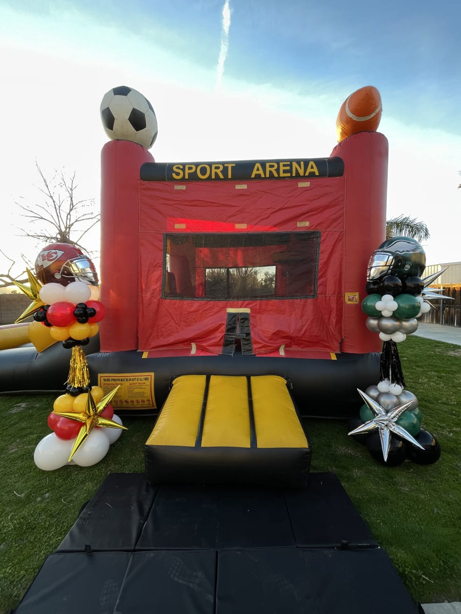 - 🏀 Sports Arena Bounce House: Dive into fun with our red and black sports-themed bounce house, a hit among young sports enthusiasts!